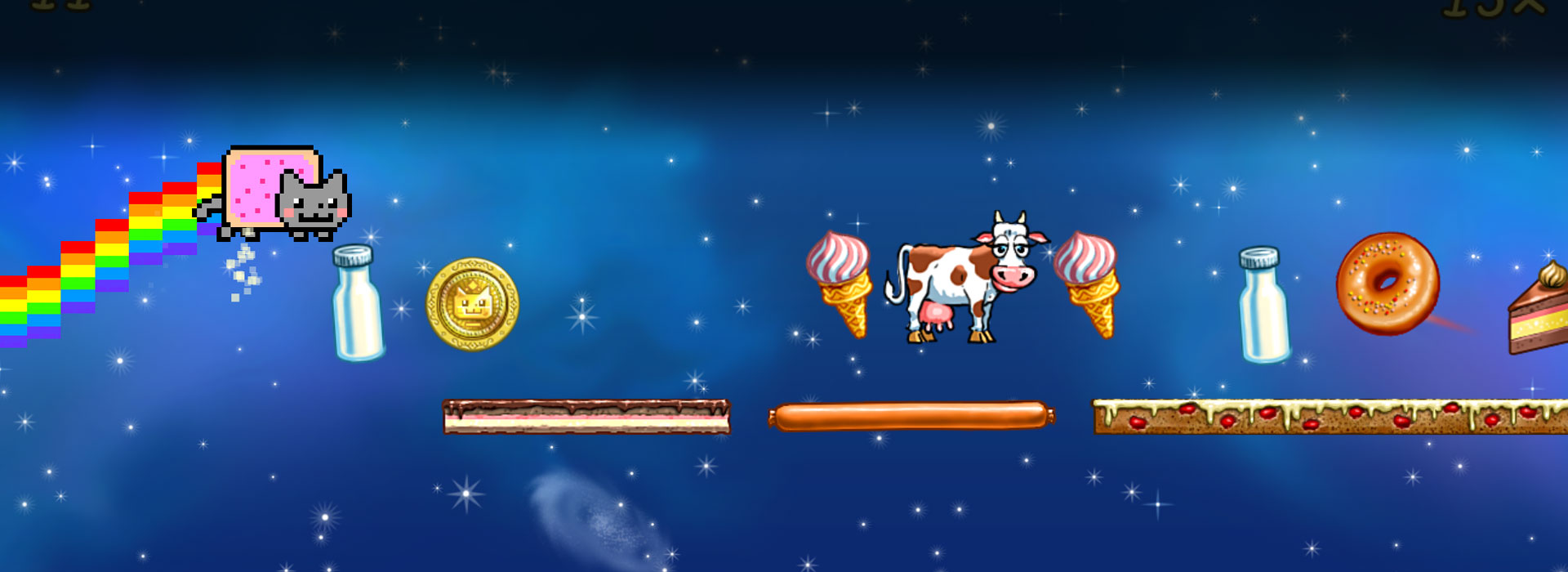 - Nyan Cat, hurling through candy filled space themed levels!