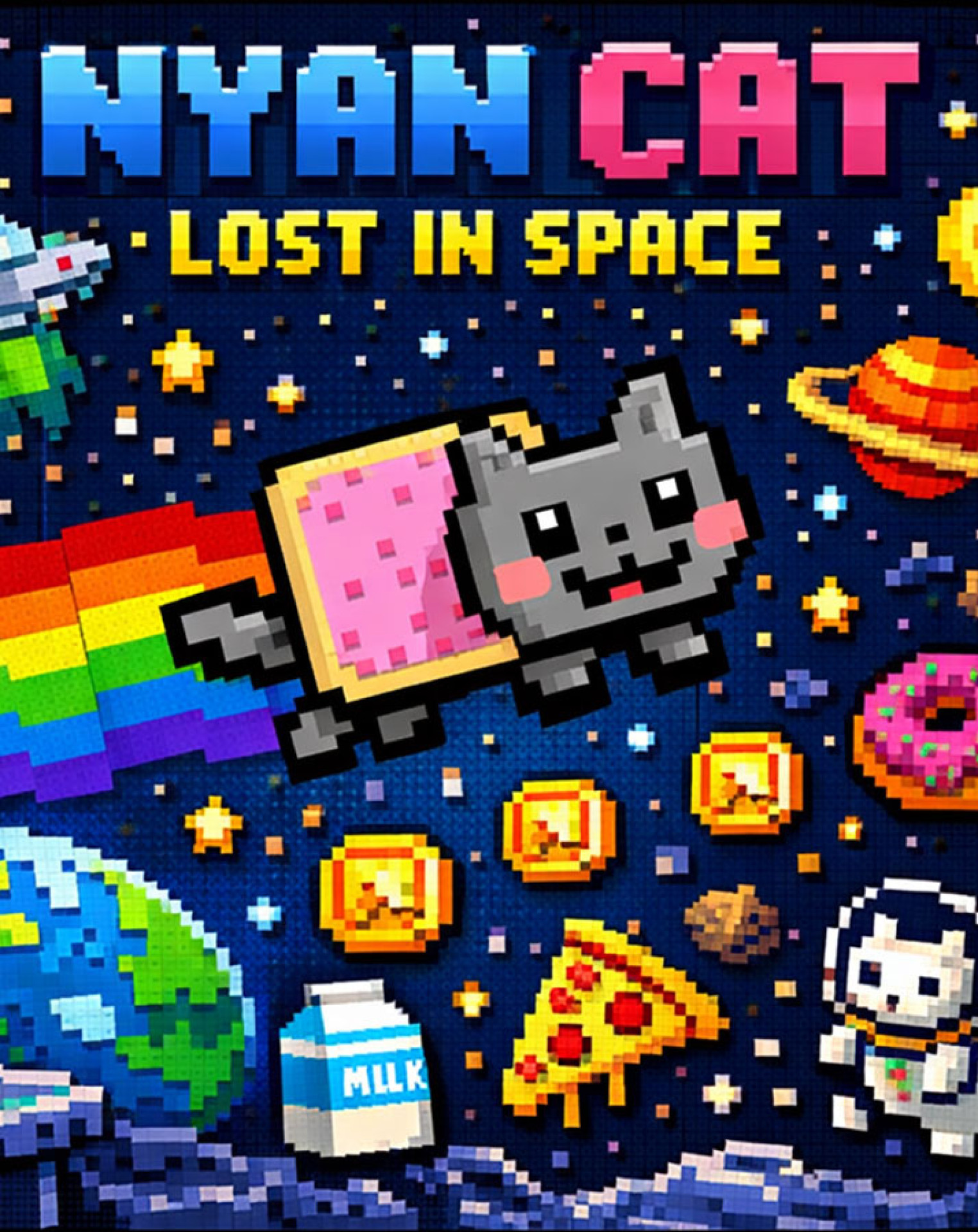 Enjoy the crazy, colorful space adventures of Nyan cat, featuring: