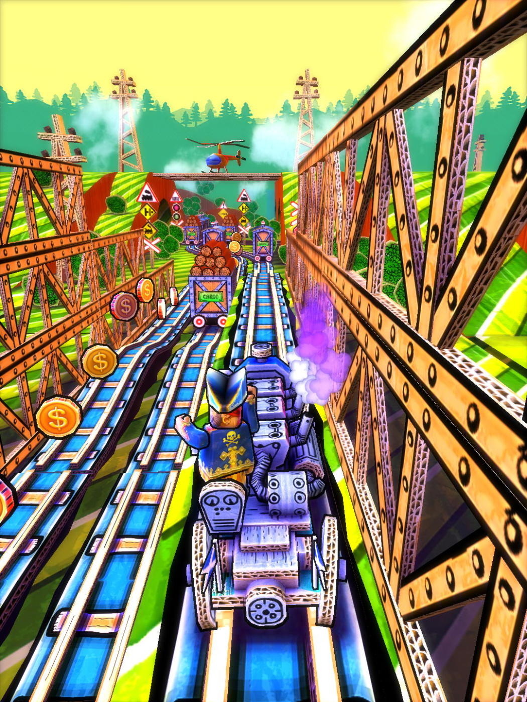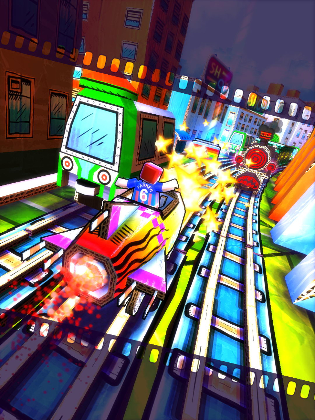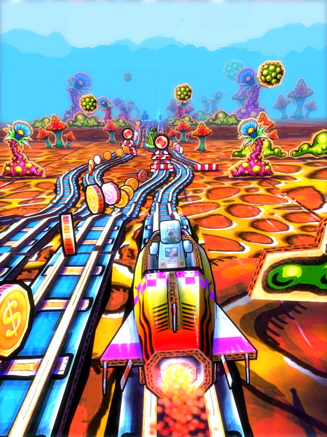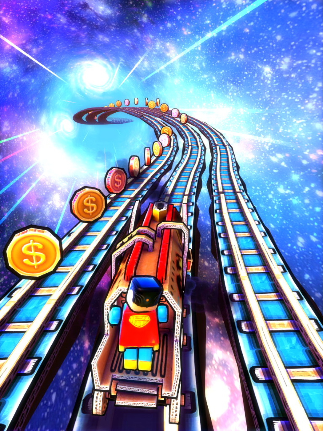 Test your runner skills, while visiting various railways resembling a child's toyroom. Full of colors, action and randomness, every run offers something new to see. Choose between multiple railways, navigate through cram-full train stations, vast deserts, tight caves, and unlock funny figures or trains which populates the frisky toyworld.
