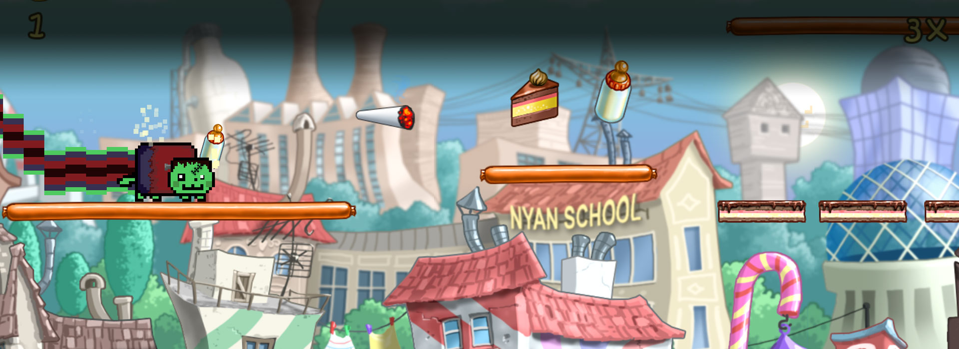 - Nyan Cat, hurling through candy filled space themed levels!